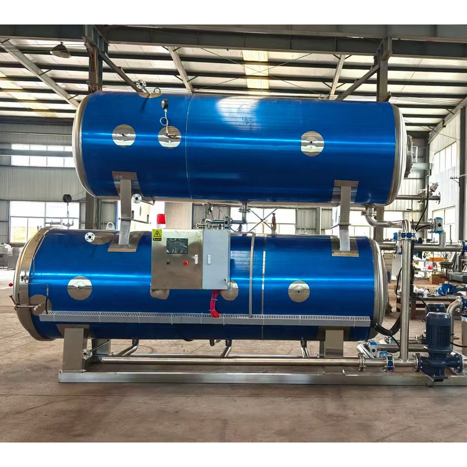 ระบบฆ่าเชื้อแบบเรตอร์ตแนวนอนสแตนเลสใหม่ ใช้ไอน้ำแรงดันสูง ฆ่าเชื้ออัตโนมัติอเนกประสงค์สำหรับอาหารบรรจุขวดเชิงพาณิชย์