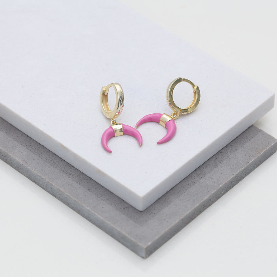 ต่างหูแบบเขากวางสีชมพูต่างหูห้อยแบบตุรกีทำด้วยมือเครื่องประดับเงินสเตอร์ลิง925