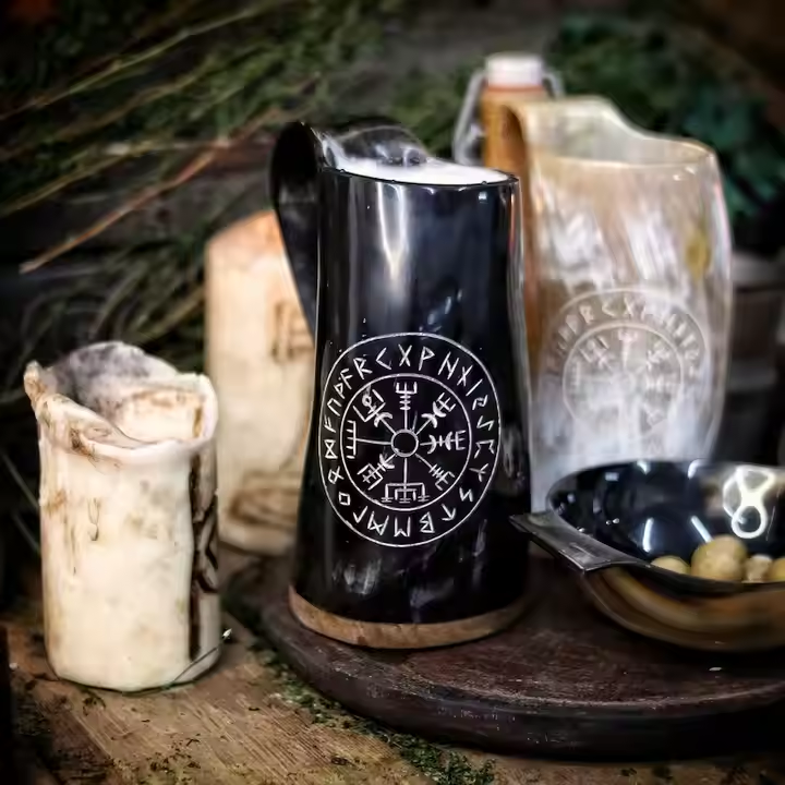 แก้วเบียร์ลายฮอร์นที่ยั่งยืนถ้วยดื่มแบบไวกิ้งทำจากงานฝีมือแบบมินิมอลจากจันทร์เสี้ยว