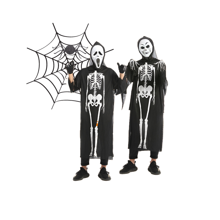 ชุดจั๊มสูทกะโหลกศีรษะสยองขวัญจัดส่งที่รวดเร็วจัดหางานรื่นเริงปาร์ตี้คอสเพลย์เครื่องแต่งกายที่มีประสิทธิภาพแพ็คในถุงโพลีผลิตในเวียดนามผลิต