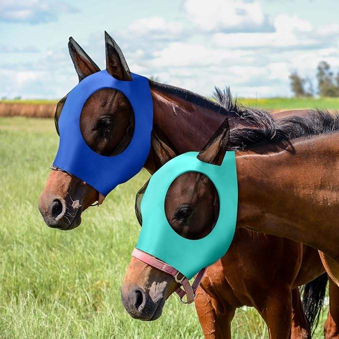 หน้ากากคลุมศีรษะป้องกันแมลงวันสำหรับม้า พร้อมที่คลุมหู ผ้าเนื้อนุ่มยืดหยุ่น ป้องกันรังสียูวี สำหรับฤดูร้อน ป้องกันแมลง ปรับแต่งได้