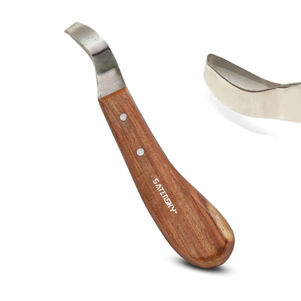 มีดปอกกีบม้าแบบวงวงรีมีดตัดกีบม้าใบมีดสแตนเลสด้ามจับไม้ยางพารา