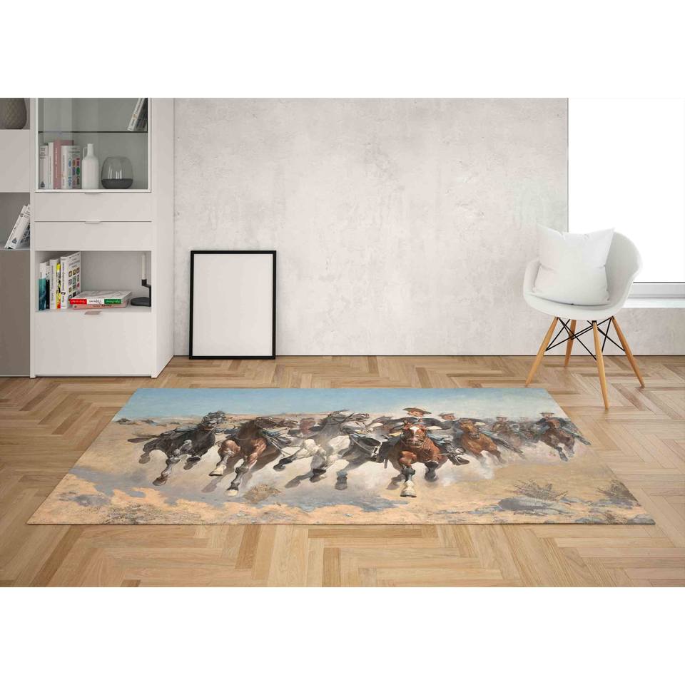 พรมของขวัญสำหรับคนรักม้า พรมพิมพ์ลายทหารที่สี่กำลังเคลื่อนย้ายม้าพร้อมพรมขนนุ่ม