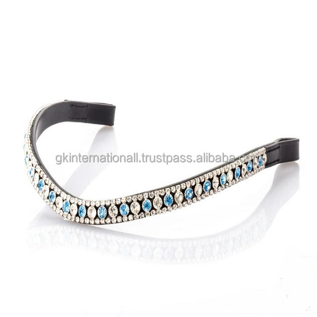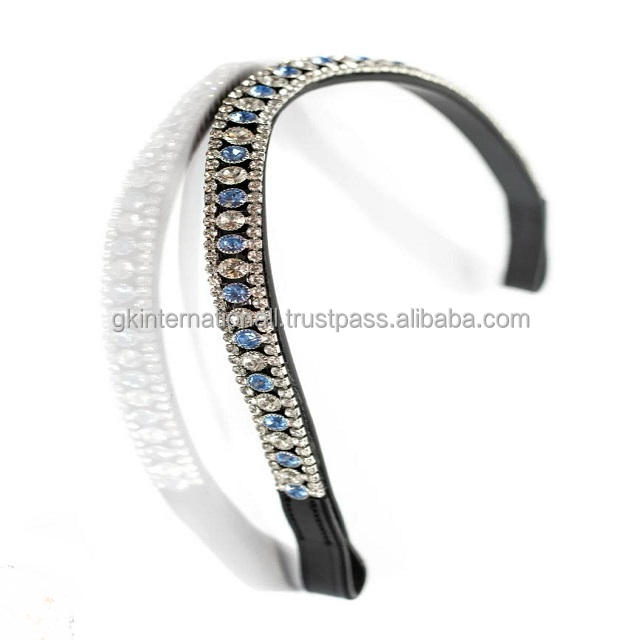 สินค้าอานม้าม้าแข่งม้าหนังแท้สายรัดคิ้วประดับคริสตัลสีฟ้าระยิบระยับ