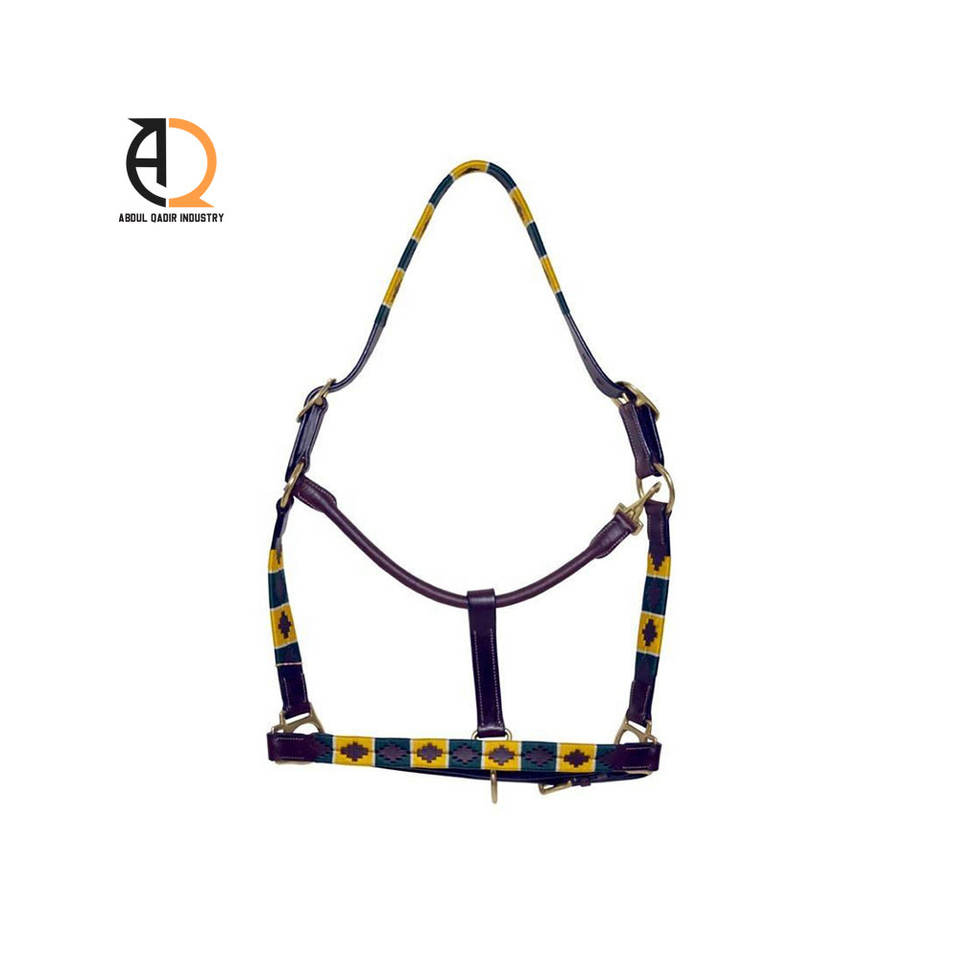 อุปกรณ์ขี่ม้า สายจูงม้าแบบปรับได้ ทำจากหนังเย็บไนลอน พร้อมเชือก