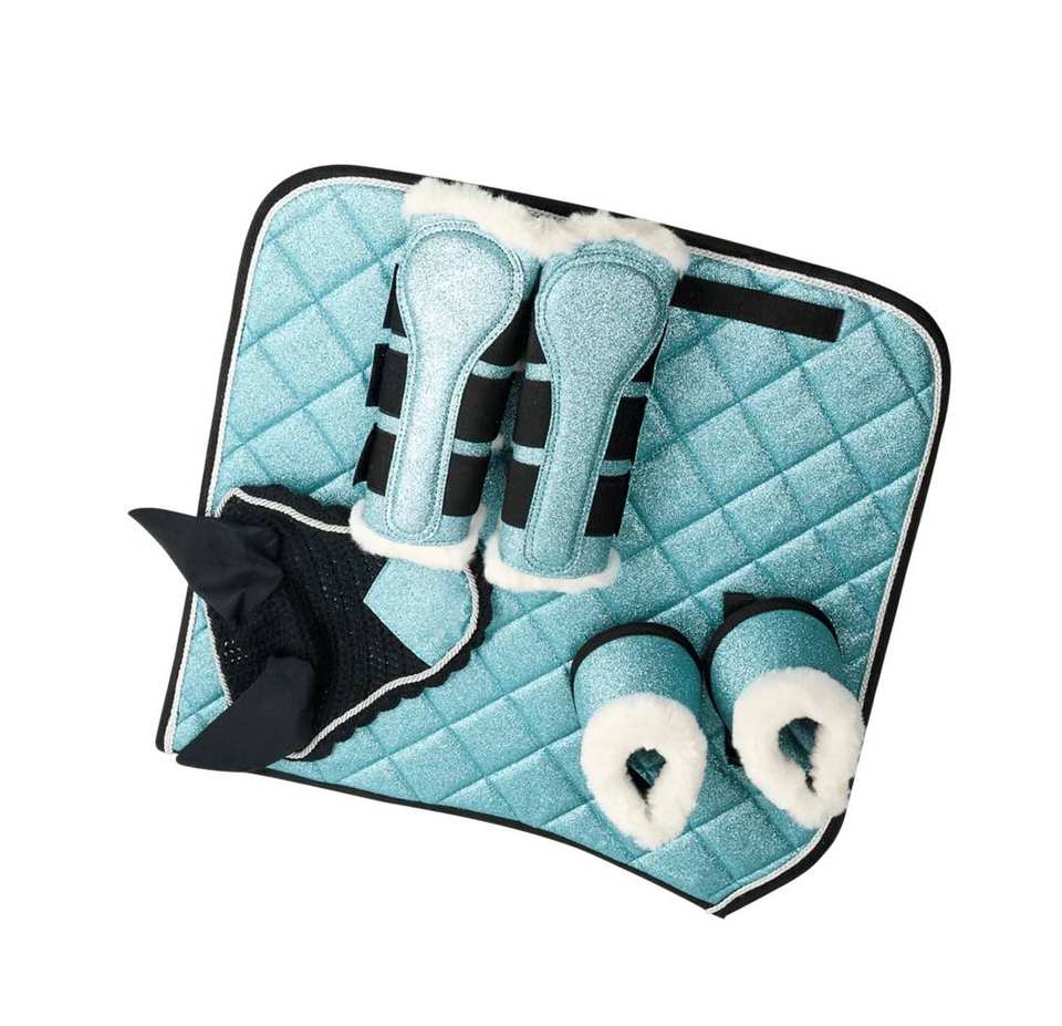ชุดอุปกรณ์ขี่ม้าพร้อมแผ่นรองอานบุนวมลายควิลท์ประกายและฝากระโปรงหูโดย Tariq MFG Co