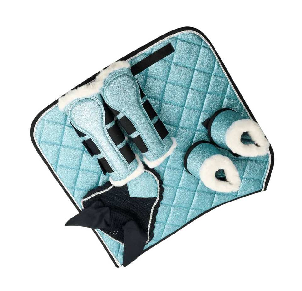 ชุดขี่ม้าพร้อมแผ่นรองอานม้าระยิบระยับและฝากระโปรงหูโดย Tariq MFG Co