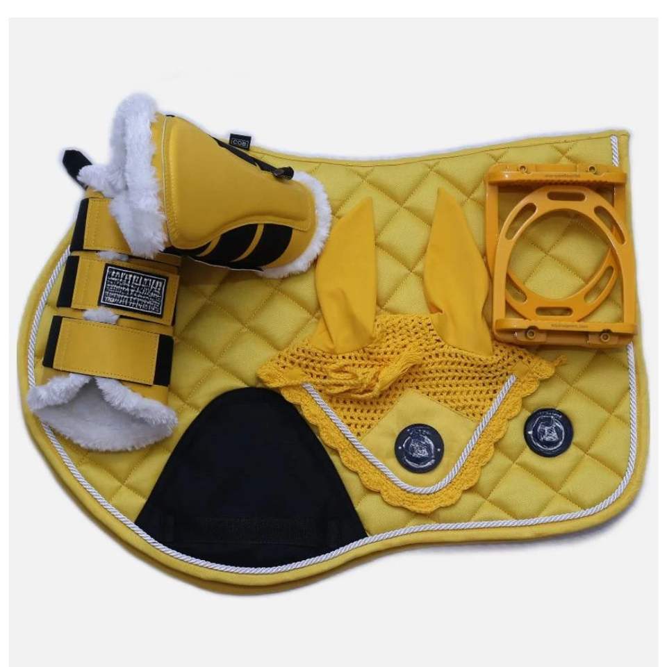 แผ่นรองอานม้าม้าแบบตะวันตกชุดรองเท้าบูตสำหรับขี่ม้ากระโดดโฟมผ้าซาตินสำหรับแข่งม้า