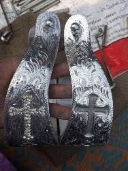 โกลนม้าอลูมิเนียมโค้งพร้อมสลักและสลักสัญลักษณ์พระคริสต์โกลนม้า