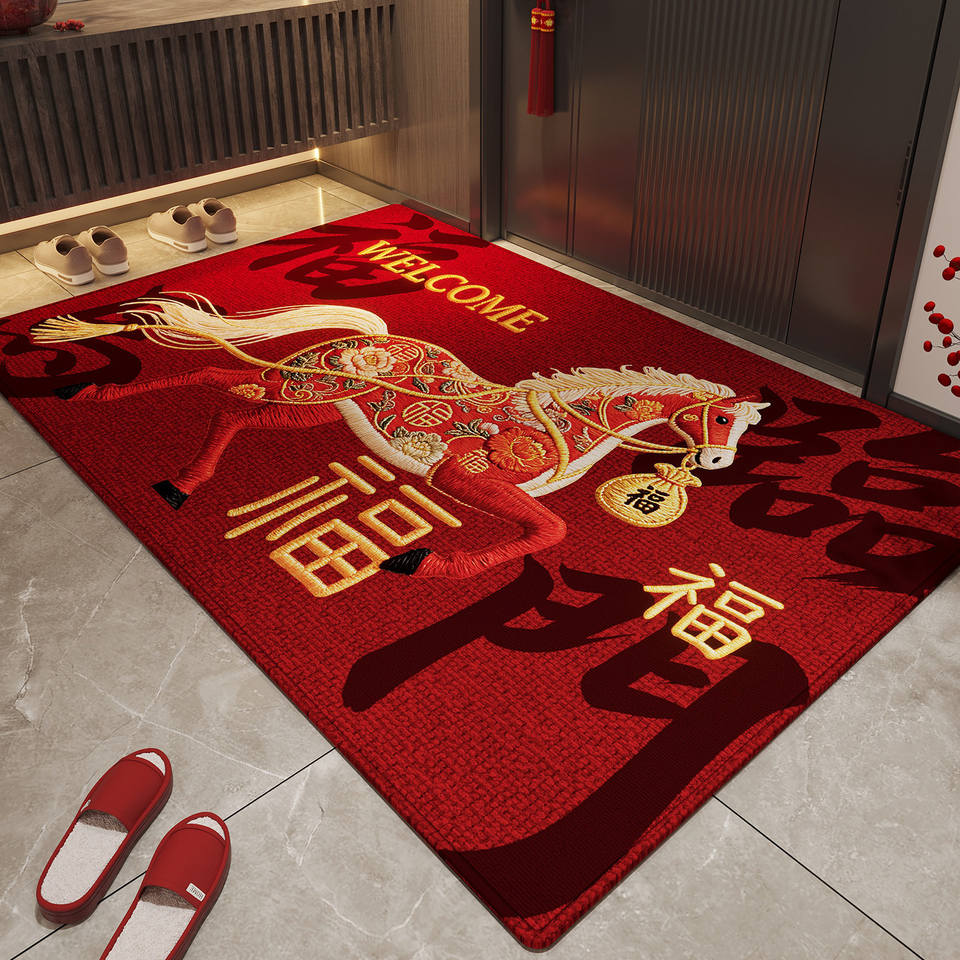 พรมเช็ดเท้าหน้าประตูปีม้า 2018 กันลื่น รูปทรงสี่เหลี่ยมผืนผ้า สำหรับปีใหม่จีน ทอโดยเครื่อง ซักมือได้
