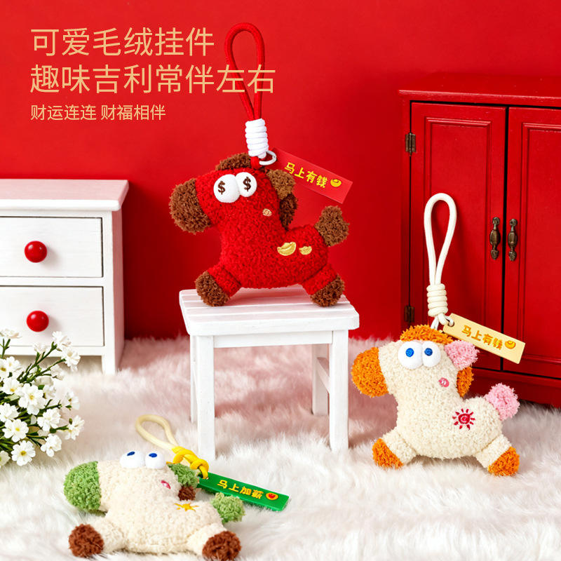 Horse Year Plush Keychain Red Beige 12cm Creative Charm For Kids Unisex Toy