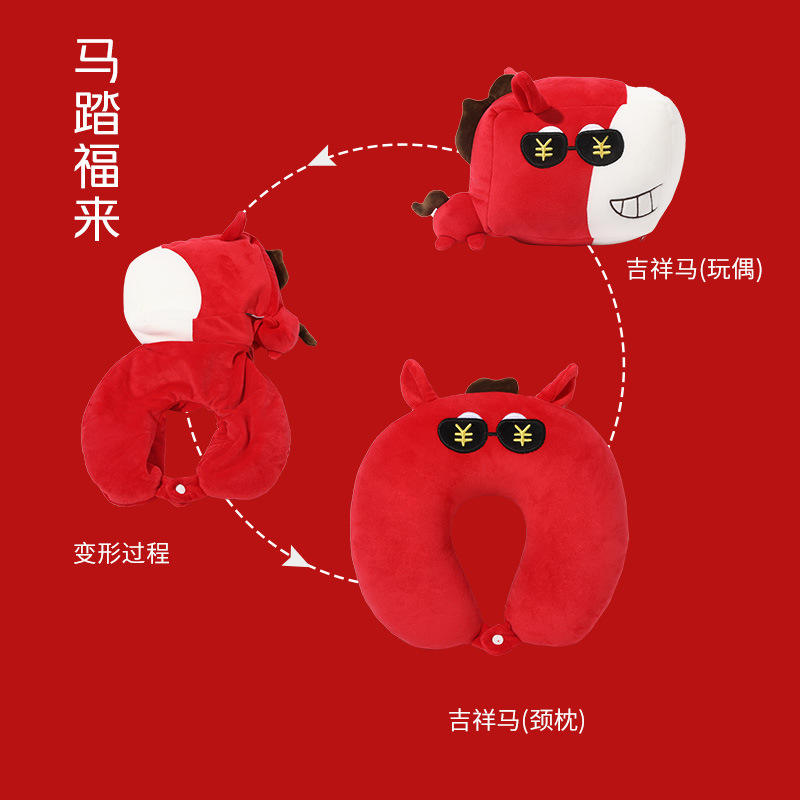 Horse Year Transformable U-Shaped Pillow 28x28x14cm Polyester Neck Support Gift For Travel And Events