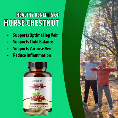 แคปซูลสารสกัดจากเกาลัดม้าเกรดพรีเมี่ยมอาหารเสริมสมุนไพรที่ปลูกในป่าขวดติดป้ายแบบกำหนดเอง