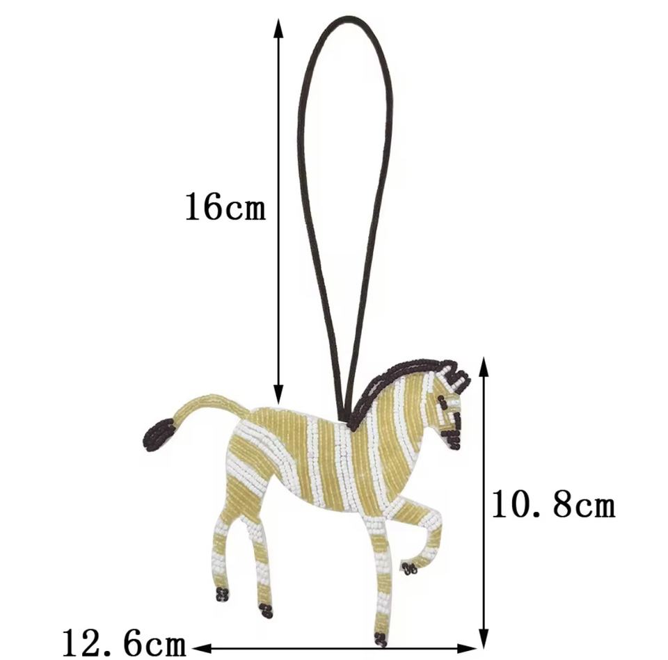 พวงกุญแจม้าสีเหลืองขาวทำมือสไตล์วินเทจประดับเพชรหลากสีพร้อมจี้ตัวอักษรภาษาอังกฤษแบบสายคล้องข้อมือ