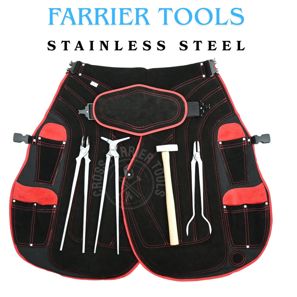 Horseshoeing Kit with Blacksmith Safety Apron Driving Hammer Round Head Holding Tong Shoe Fire Tong Long Reach Shoe Spreader