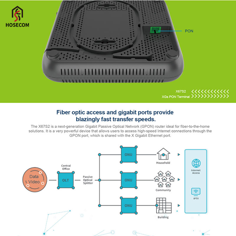 Hosecom XGSPON 10GE Xpon ONU VOIP พอร์ต RJ11 อุปกรณ์ไฟเบอร์ออปติกความเร็วสูงพิเศษ ONT ONU