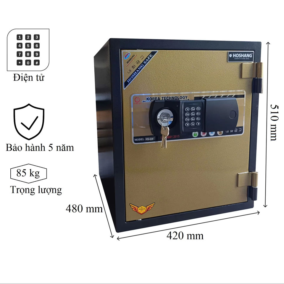 ตู้เซฟนิรภัย Hoshang HS-52E ทนทาน ป้องกันการโจรกรรม กันน้ำ พร้อมระบบล็อคอิเล็กทรอนิกส์สมัยใหม่ ด้วยลายนิ้วมือและรหัสผ่าน