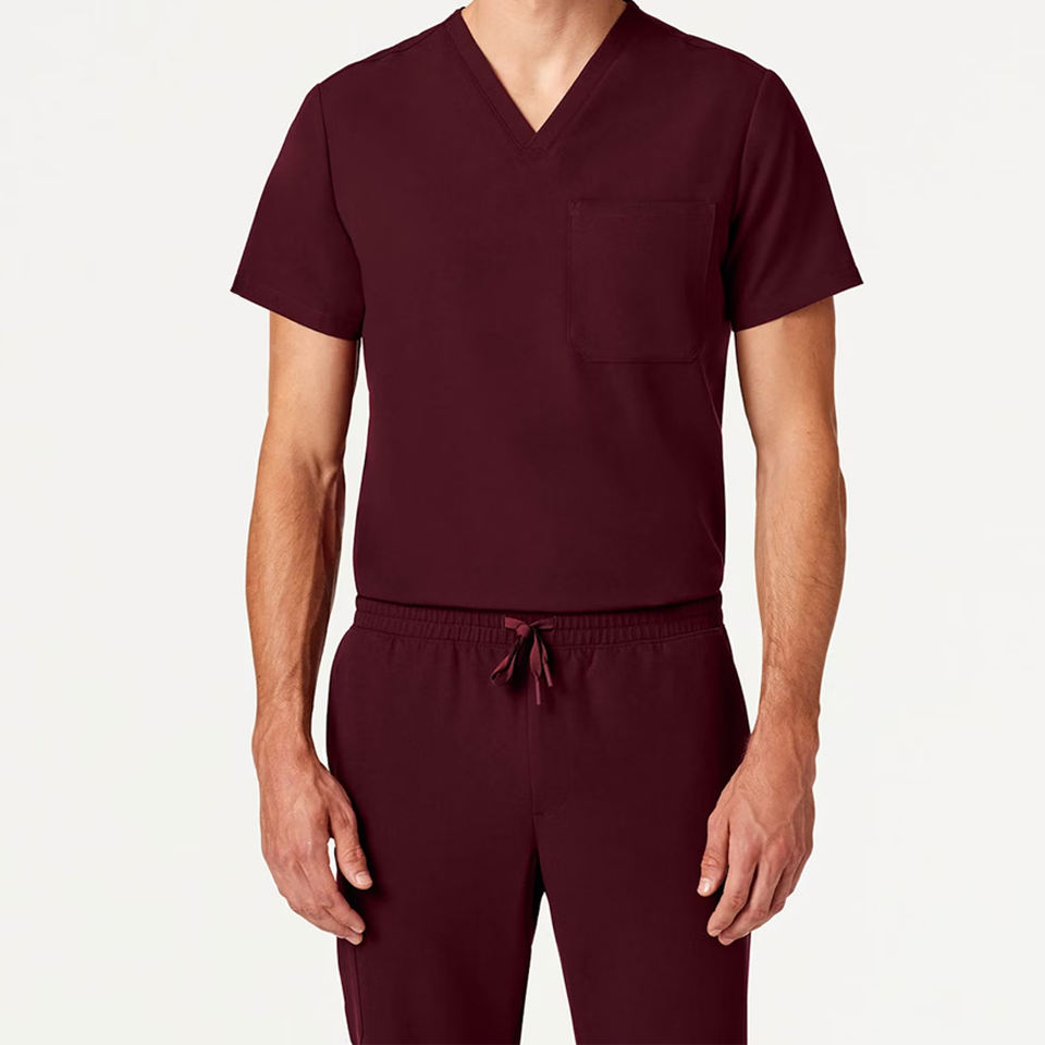 ชุดพยาบาลชาย คอวี แขนสั้น มีกระเป๋า คุณภาพสูง ออกแบบเองได้