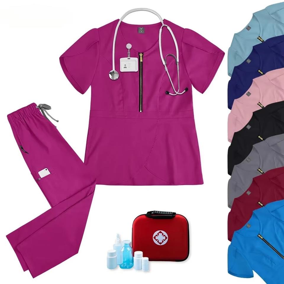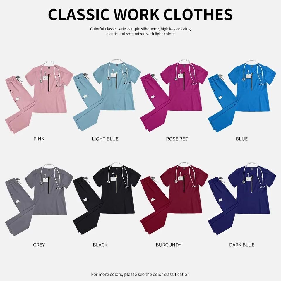 ชุดเครื่องแบบพยาบาลชุดวิ่งคอวีแขนสั้นสำหรับผู้หญิงชุดวิ่งสำหรับใช้ในโรงพยาบาลร้านขายยา