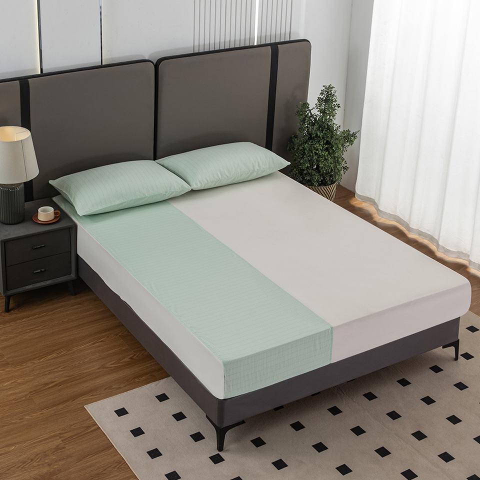ผ้าปูที่นอนแบบเรียบสำหรับโรงพยาบาลและโรงแรม ปักลาย ระบายอากาศได้ดี ใช้สำหรับพื้นนุ่ม 400TC ผ้าฝ้ายผสม ป้องกันรังสี ป้องกันเลือด