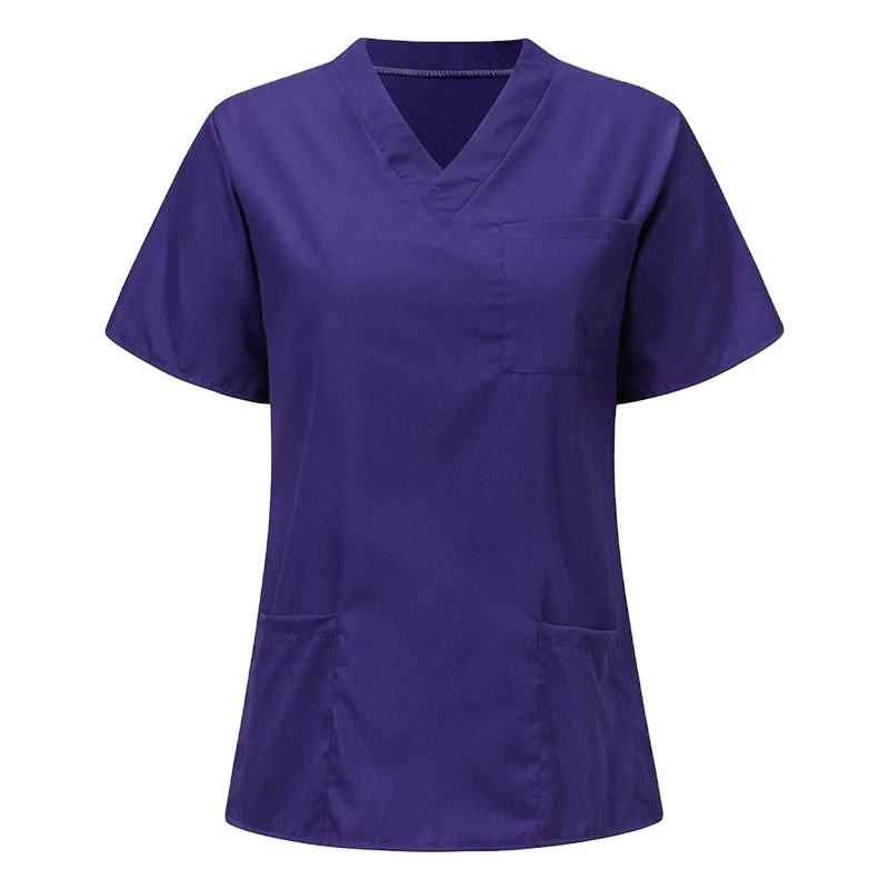 เสื้อสครับแพทย์สำหรับโรงพยาบาล เสื้อพยาบาล ยืดหยุ่น สวมใส่สบาย คอวี ยูนิเซ็กซ์ เสื้อผ้าสครับสำหรับมืออาชีพ