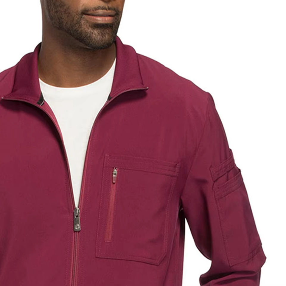เสื้อแจ็คเก็ตสครับสำหรับโรงพยาบาล ชุดยูนิฟอร์มพยาบาล เสื้อสครับผู้ชาย ผ้ายืด สแปนเด็กซ์ เสื้อแจ็คเก็ตสครับทางการแพทย์ สีแดงเบอร์กันดี ชุดยูนิฟอร์มผู้ชายสำหรับโรงพยาบาล