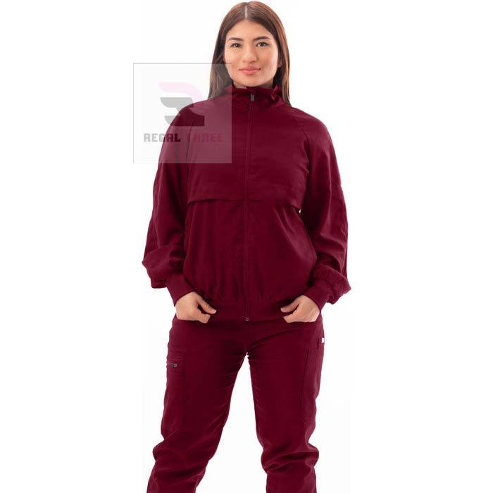 เสื้อแจ็คเก็ตพยาบาลแบบซิป ผ้าสแปนเด็กซ์/ผ้าฝ้ายออร์แกนิค แบบยูนิเซ็กซ์ เป็นมิตรกับสิ่งแวดล้อม