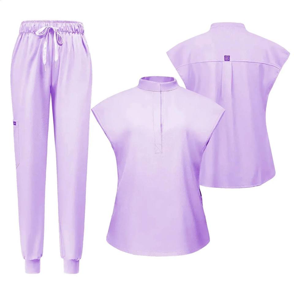 ชุดสครับสำหรับแพทย์หญิง ผ้าเนื้อนุ่ม เสื้อและกางเกงสครับทางการแพทย์ ซักได้ ชุดยูนิฟอร์มแพทย์