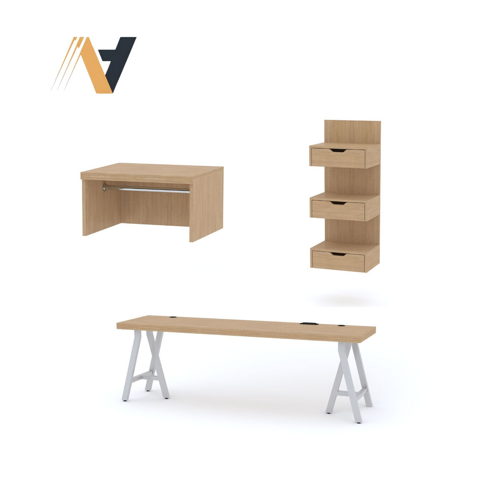 ชุดเฟอร์นิเจอร์สำหรับโรงแรม ประกอบด้วยเตียง โต๊ะทำงาน ตู้เสื้อผ้า สำหรับโครงการห้องพักของแฮมป์ตัน บาย ฮิลตัน