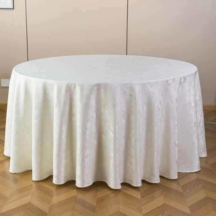ผ้าปูโต๊ะทรงกลมขนาด 120 นิ้ว เกรดโรงแรม ผลิตจากผ้าแจ็คการ์ดโพลีเอสเตอร์ กันน้ำ เป็นมิตรกับสิ่งแวดล้อม ทนความร้อน ซักได้