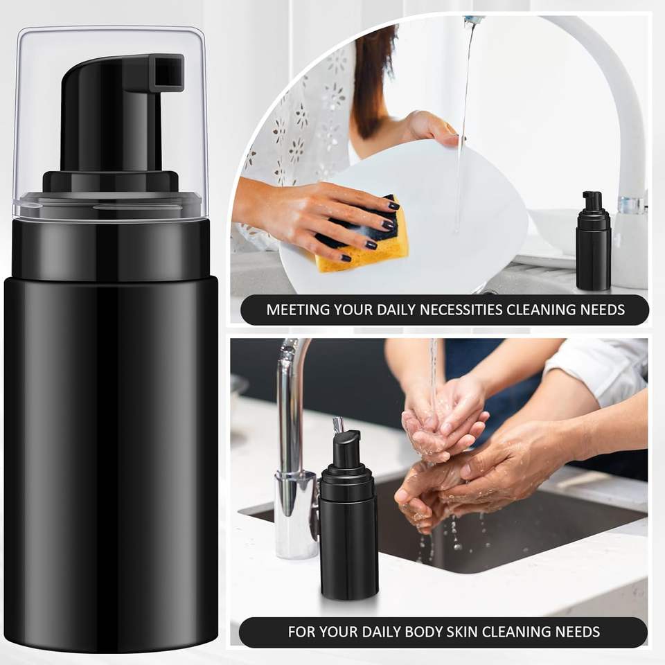 ชื่อผลิตภัณฑ์:ขวดโฟมพร้อมฝาปั๊มล้างหน้าพลาสติกสีดำทรงกลมออกแบบได้ตามที่ต้องการ
