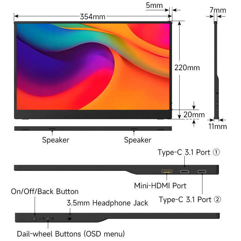 ประเภทอินเตอร์เฟส:Mini HD-MI;USB Type C*2; adapter*1;Earphone*1