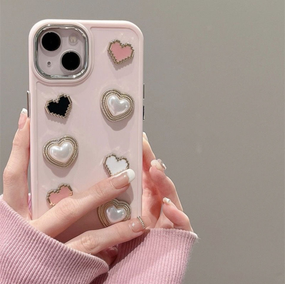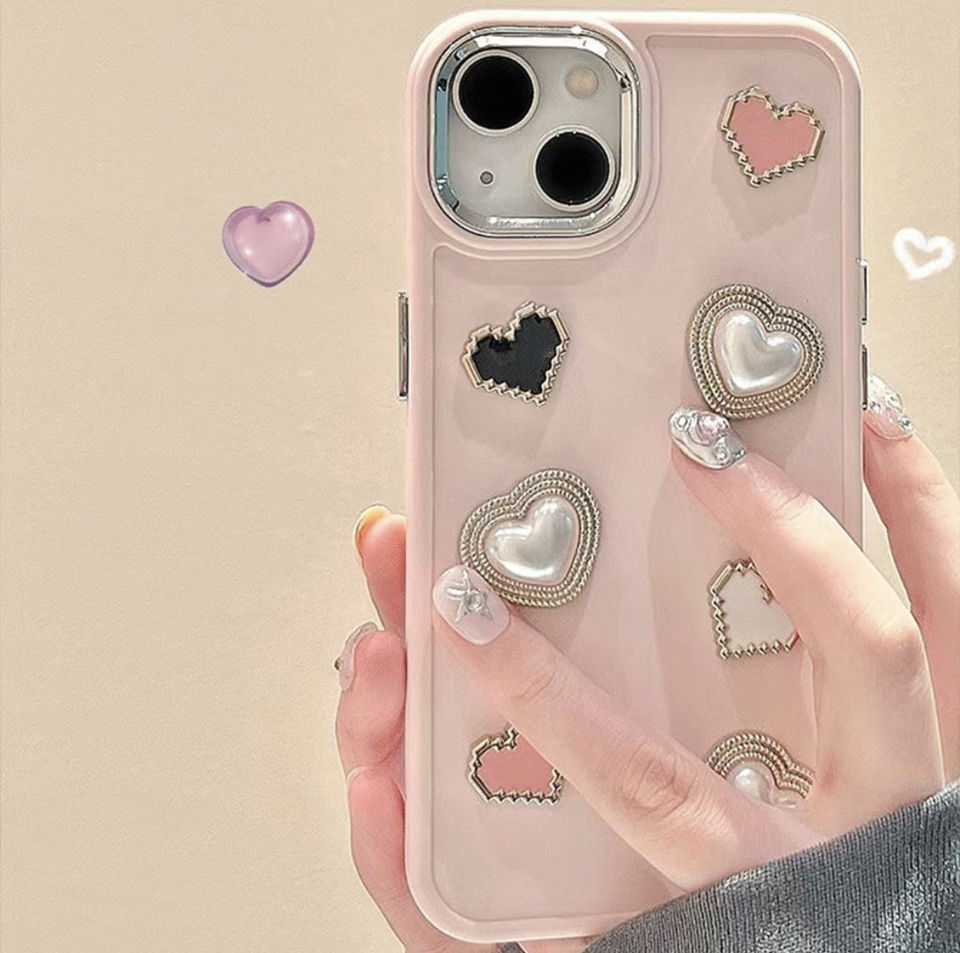 เคสโทรศัพท์ซิลิโคนนิ่มผิวด้านเรียบง่ายลายความรักสีชมพูยอดนิยม3D สำหรับ iPhone 15 13 14 12 PRO MAX 15 PLUS 11