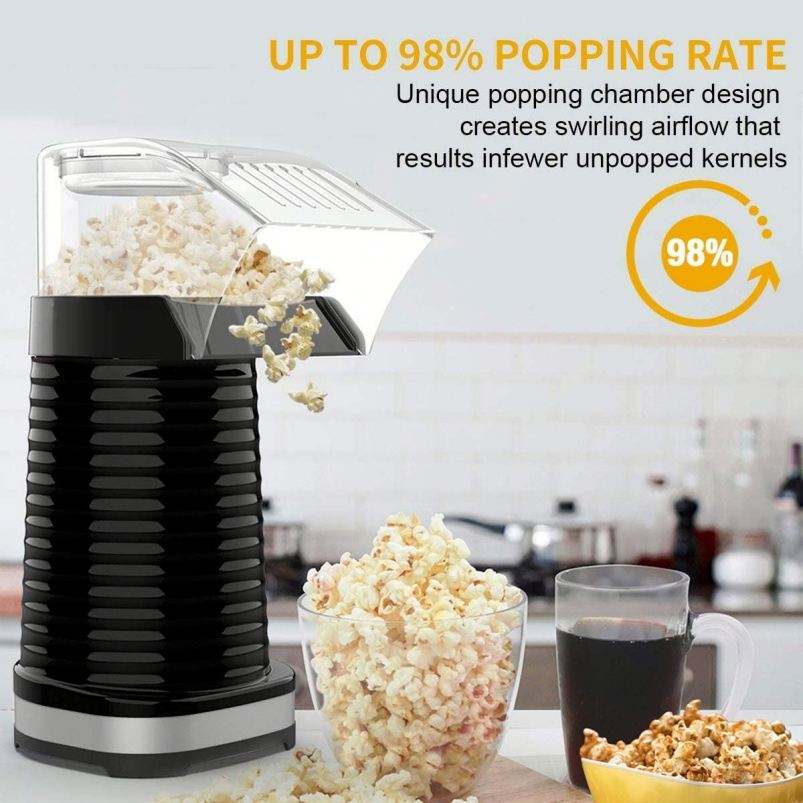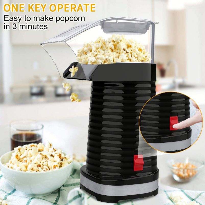 เครื่องทำป๊อปคอร์นซิลิโคนด้วยลมร้อน1200W เครื่องทำป๊อปคอร์นไฟฟ้าได้รับการรับรอง ETL อัตราการเต้นของ98% 3นาทีที่เป็นมิตรต่อสิ่งแวดล้อม