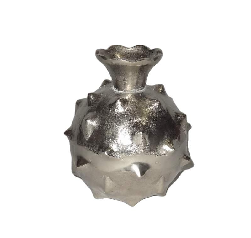 แจกันดอกไม้อลูมิเนียมลายนูนแบบโบราณแจกันทรงถังชุบนิกเกิลหรูหราทันสมัยแจกันดอกไม้ประดับงานแต่งงานในบ้าน
