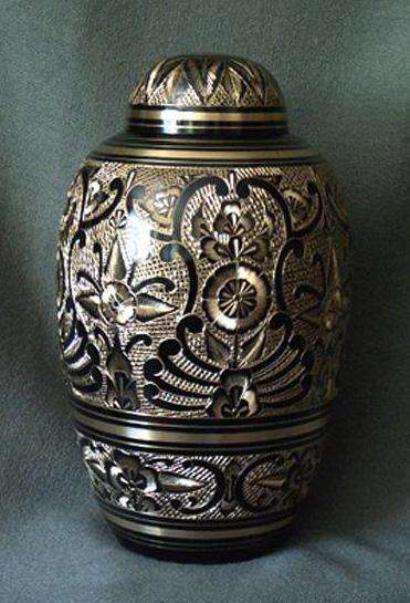 โกศใส่เถ้ากระดูกสำหรับมนุษย์และสัตว์เลี้ยงที่น่าจดจำลายนูนโลหะสีโบราณ