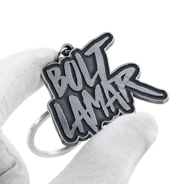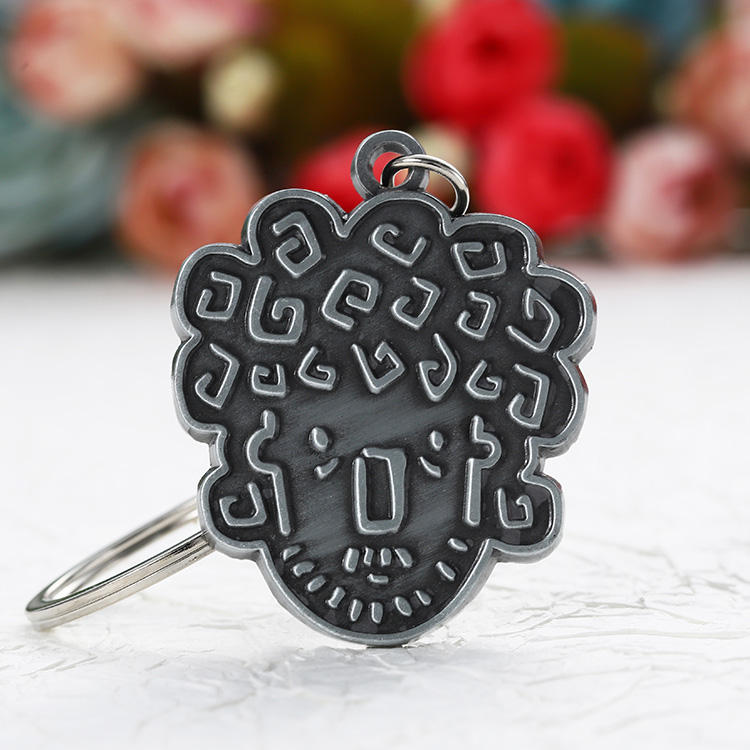 พวงกุญแจโลหะผสมสังกะสีชุบเงินโบราณลายนูนแบบไม่สมมาตร พวงกุญแจโลโก้แบบกำหนดเอง ลาย 3 มิติ ชื่อ ตัวอักษร