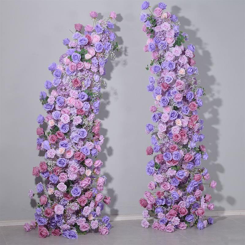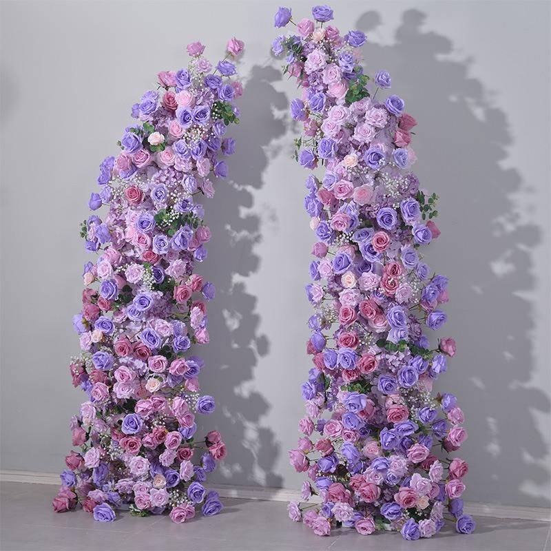 ตกแต่งดอกไม้โค้งยอดนิยมสำหรับงานแต่งงานช่อดอกไม้ประดิษฐ์ดอกไม้ผ้าไหมพร้อมฐานโต๊ะสำหรับงานเลี้ยงในบ้าน