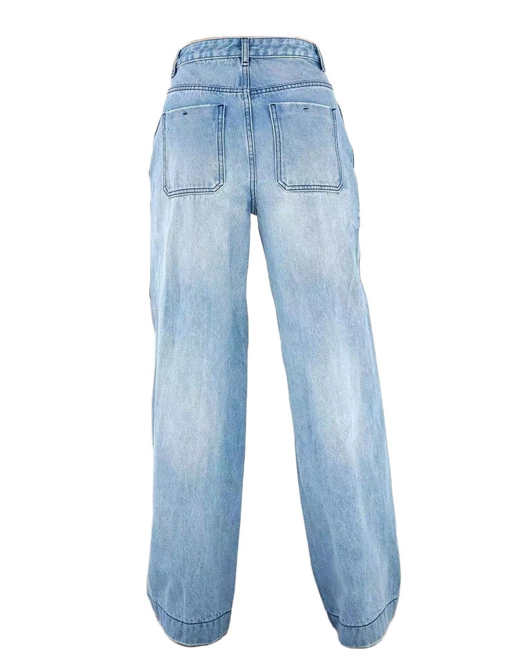กางเกงยีนส์ขายาวขายาวแบบลำลองสำหรับฤดูร้อนกางเกงยีนส์ขายาวแบบพรีเมี่ยมสำหรับผู้หญิงมีกระดุมและมีซิปทรงโอเวอร์ไซส์