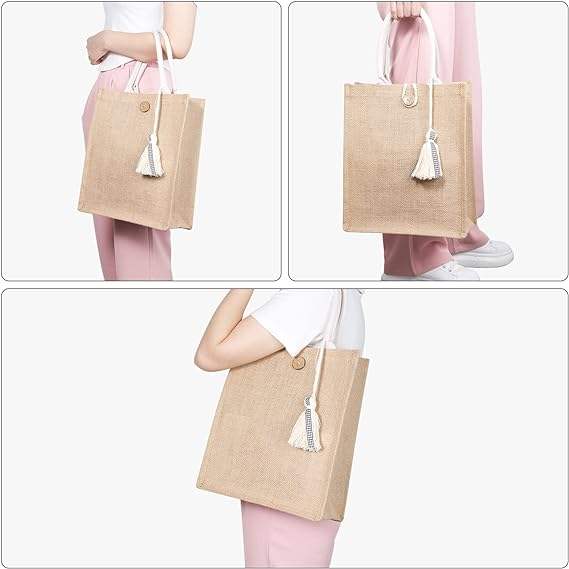 กระเป๋าผ้ากระสอบปอกระเจาสำหรับใส่ของช้อปปิ้งแบบใช้ซ้ำได้