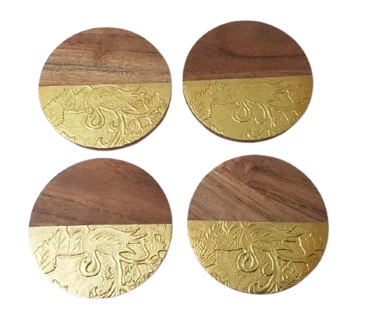 คำอธิบาย:ที่รองแก้วโลหะทองเหลืองไม้มะม่วง