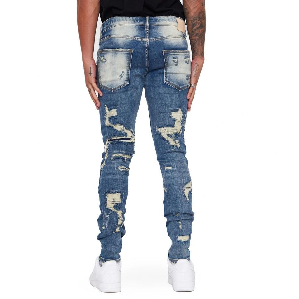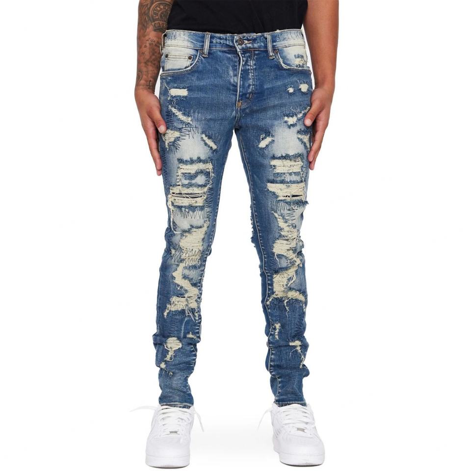 กางเกงยีนส์สีน้ำเงินร้อนแรงแบบขาดๆ สำหรับผู้ชาย