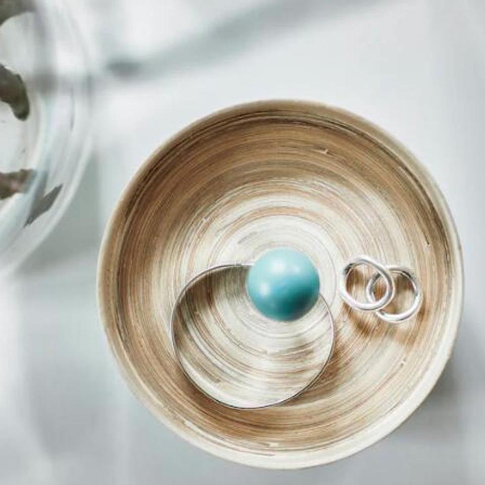 ตะกร้าเก็บของขนาดเล็กสีฟ้าพร้อมฝาปิดทำจากไม้ไผ่ราคาถูกสำหรับตกแต่งบ้านเวียดนามขายส่ง