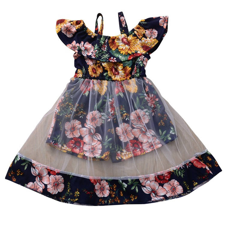 ชุดเดรสเด็กผู้หญิงลายดอกทานตะวัน คอระบายผ้าตาข่าย แต่งระบายฟอลบาลา สำหรับงานปาร์ตี้ แบรนด์ Hot Bohemia