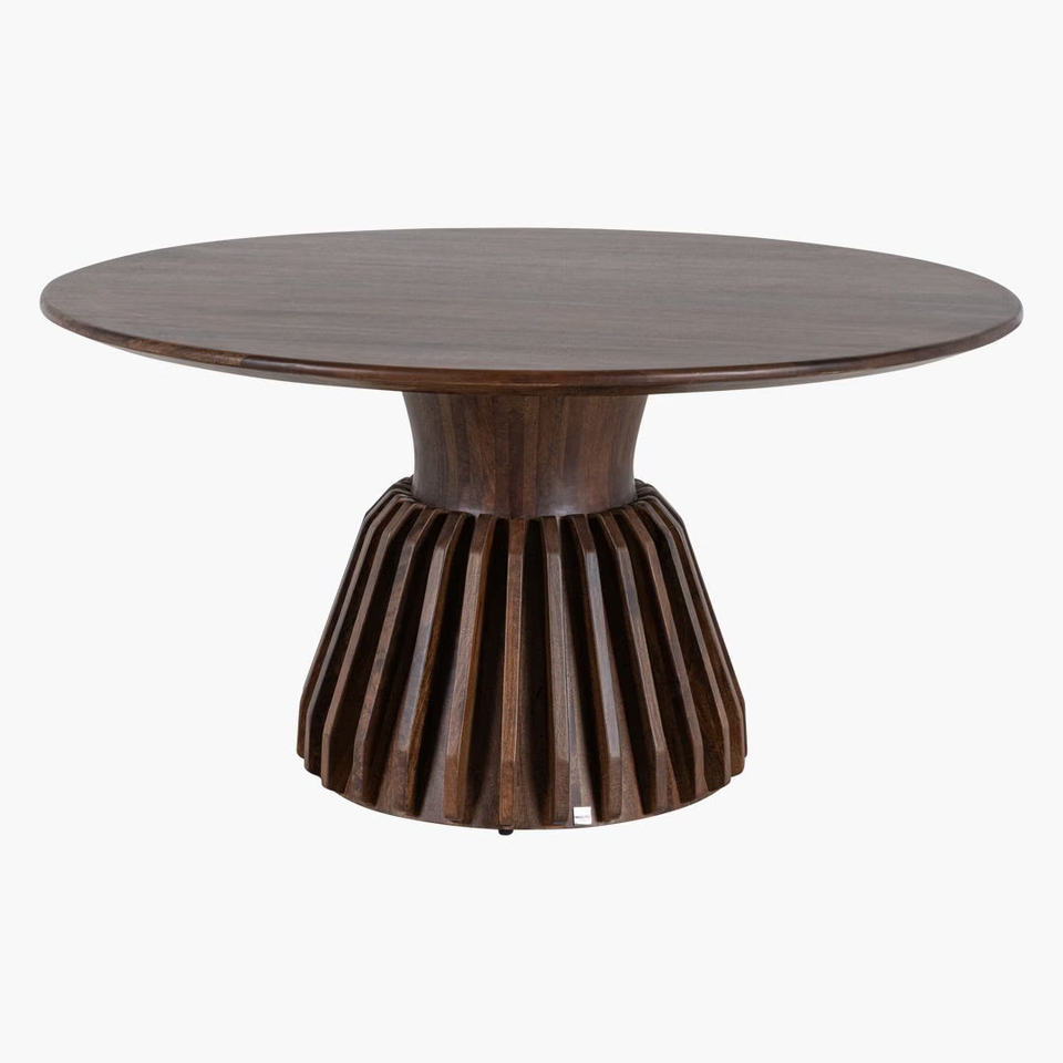 Hot Bold Look Pedestal Strong Base Modern Design Round Shape Solid Mango Wood Natural Texture Brown Finish Kitchen Dining Table