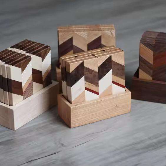 ถาดรองแก้วจากไม้และยางเรซินสำหรับตกแต่งโต๊ะถาดรองแก้วทรงสี่เหลี่ยมทำด้วยมือทำจากวัสดุเป็นมิตรกับสิ่งแวดล้อม