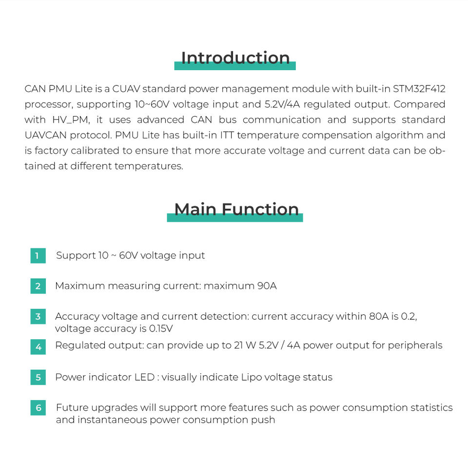 ร้อน cuav สามารถโมดูล PMU Lite 90A 10-60V อินพุต5.2V/4A เอาท์พุต0.15V ความแม่นยำสูงกับอัลกอริทึม ITT สำหรับ UAV drones