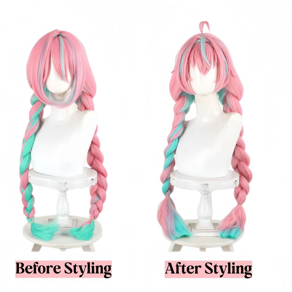 ฮอตช้อยส์ วาเรซาคอสเพลย์วิกผม 98 ซม.สีชมพูสีเขียววิกผมถักเปียสำหรับผู้หญิงอะนิเมะคอสเพลย์วิกผมสังเคราะห์ทนความร้อนผม
