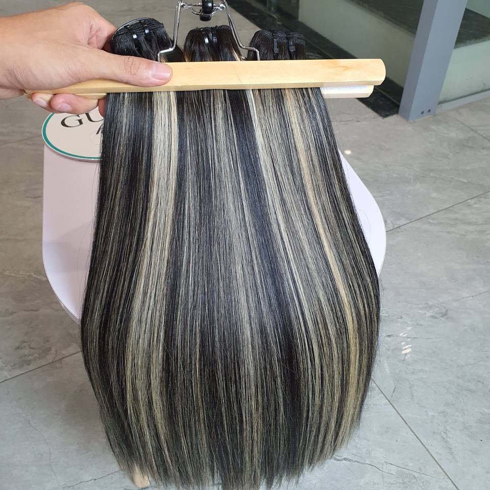 ผมต่อสีบลอนด์ไฮไลท์สีร้อนแรง ผิวสีเวียดนาม ผมแท้แบบ Remy คุณภาพสูง 100% ผมมนุษย์บริสุทธิ์ เรียงเส้นผมอย่างดี GUGU HAIR