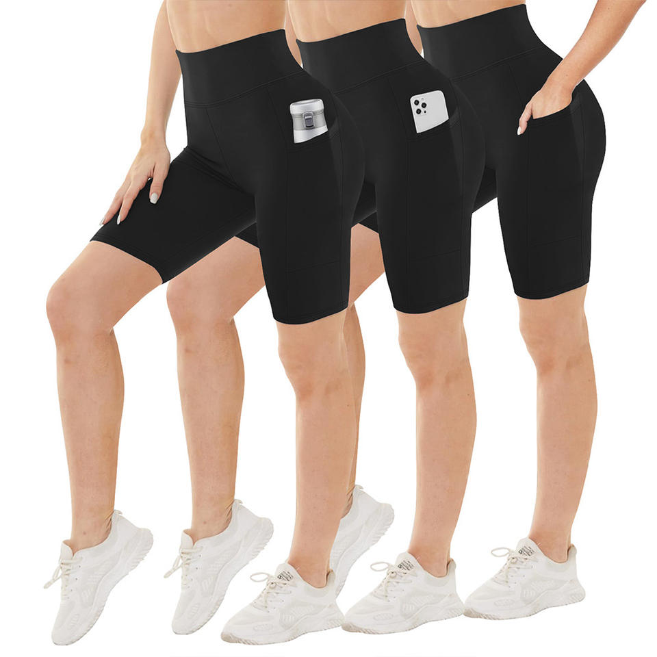 กางเกงขาสั้นขี่จักรยานเอวสูงสำหรับผู้หญิงกางเกงขาสั้นสำหรับใส่ออกกำลังกายเล่นโยคะวิ่งเล่นยิมผ้าสแปนเด็กซ์แบบถักมีกระเป๋าติดโลโก้ได้ตามต้องการ